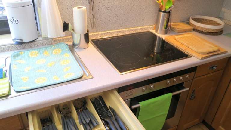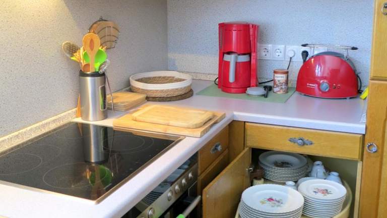 Die Unterkunft bietet die Möglichkeit der Lebensmittellieferung. In der gut ausgestatteten Küche können die Gäste eigene Mahlzeiten zubereiten. Es sind jedoch keine weiteren Verpflegungsmöglichkeiten oder Gastronomien im Text erwähnt.