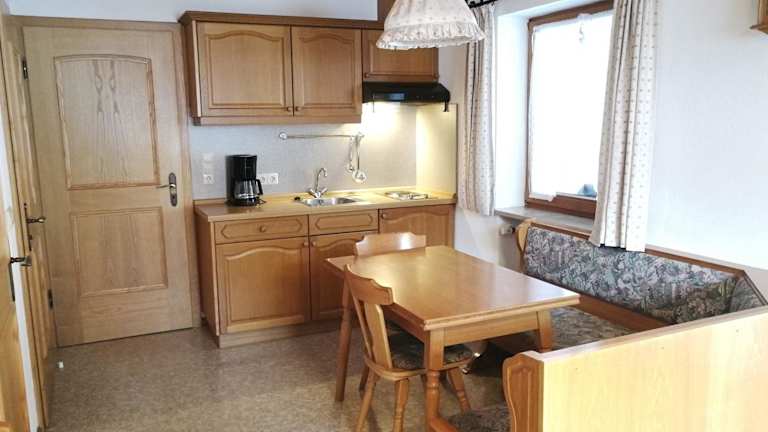 Das Haus Moosbach bietet Selbstversorgungsmöglichkeiten mit seiner gut ausgestatteten Küchenzeile. Sie können Ihre eigenen Mahlzeiten zubereiten und diese auf dem Balkon mit Bergblick genießen. Alternativ gibt es in der Umgebung auch verschiedene Restaurants und Cafés, in denen Sie regionale Spezialitäten probieren können.