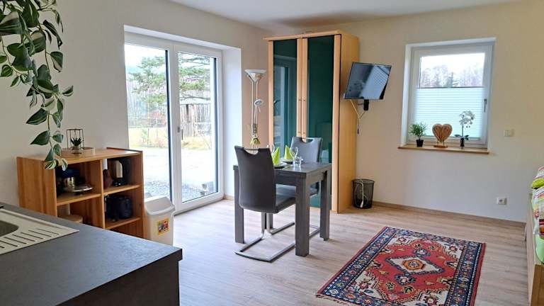 Die Ferienwohnung verfügt über ein modernes Badezimmer mit einer Dusche, kostenlosen Pflegeprodukten und einem Haartrockner. Weiterhin ist die Unterkunft mit einem Satelliten-TV ausgestattet. Zu den weiteren Annehmlichkeiten gehören WLAN, eine Heizung sowie Gartenmöbel für die Terrasse. Haustiere sind erlaubt, jedoch können Gebühren anfallen.
