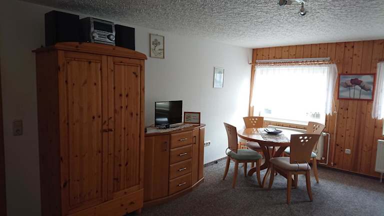 Die Ferienwohnung Müller bietet ein gemütliches Schlafzimmer und ein Wohnzimmer, in dem Sie sich wie zu Hause fühlen können. Die voll ausgestattete Küche mit Kühlschrank und Kaffeemaschine ermöglicht es Ihnen, Ihre eigenen Mahlzeiten zuzubereiten. Das Badezimmer verfügt über eine Dusche und einen Haartrockner. Zur Unterhaltung stehen ein Flachbild-Sat-TV und ein CD-Player zur Verfügung. Kostenloses WLAN ist ebenfalls vorhanden.