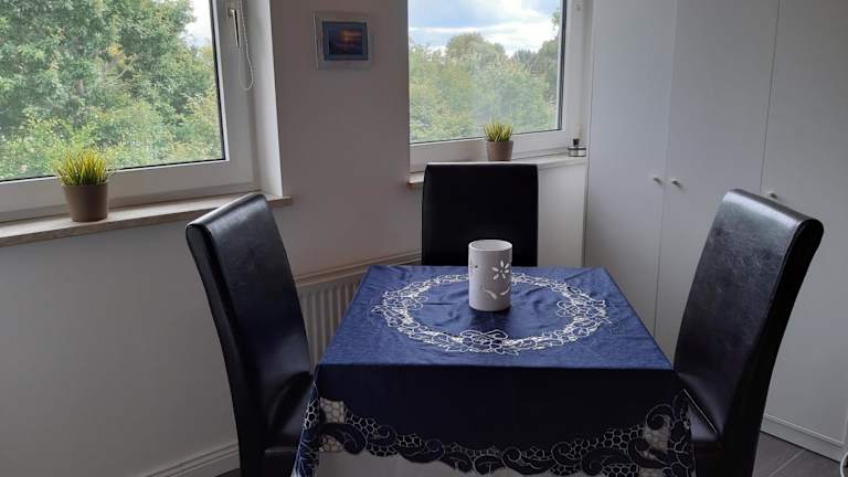 In der Ferienwohnung ist eine voll ausgestattete Küche vorhanden, die mit einem Kühlschrank und einer Kaffeemaschine ausgestattet ist. Es gibt keine weiteren Informationen zur Verpflegung.