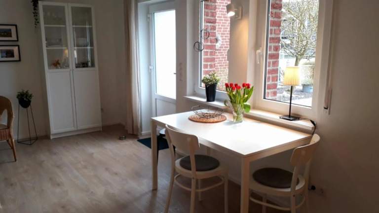 Die Ferienwohnung verfügt über ein gemütliches Schlafzimmer, ein geräumiges Wohnzimmer und eine gut ausgestattete Küche mit Kühlschrank und Geschirrspüler. Das Apartment bietet zudem eine Terrasse mit Blick auf den Garten, auf der Sie sich entspannen und die Natur genießen können. Handtücher und Bettwäsche werden gestellt, um Ihnen einen angenehmen Aufenthalt zu ermöglichen.