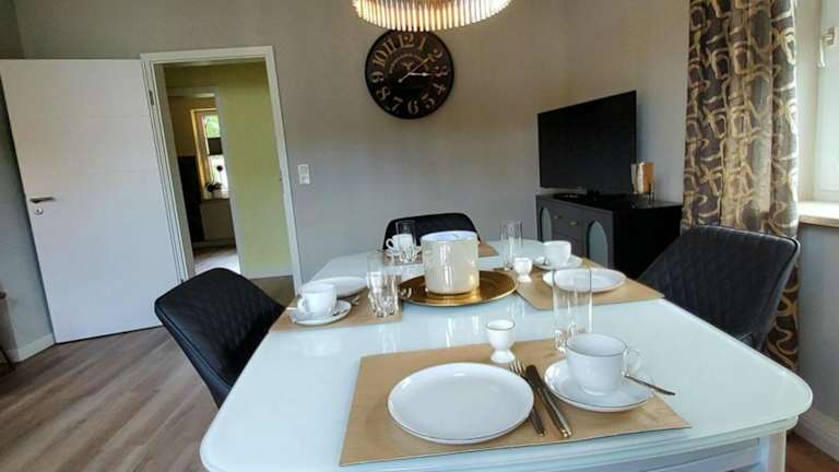 Die Ferienwohnung umfasst zwei Schlafzimmer, ein Badezimmer mit Dusche sowie eine gut ausgestattete Küche, die über einen Kühlschrank und einen Geschirrspüler verfügt. Ein Flachbild-TV mit Satellitenkanälen ist ebenfalls vorhanden, ebenso wie Handtücher und Bettwäsche. Die Unterkunft ist als Nichtraucherzone eingerichtet.