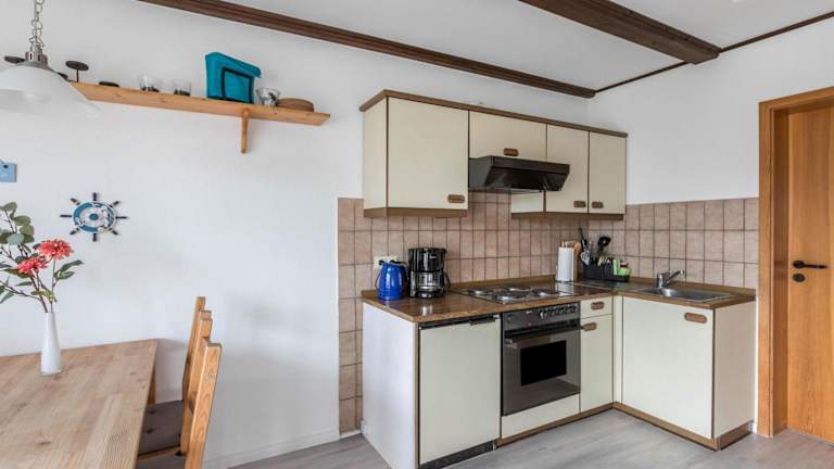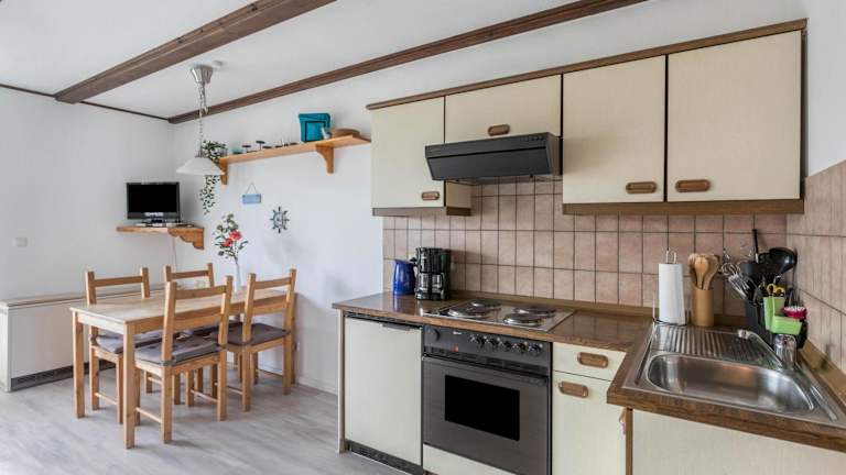 Die Ferienwohnung verfügt über zwei Schlafzimmer, ein Badezimmer mit Dusche, eine gut ausgestattete Küche mit Kühlschrank und Ofen sowie einen TV mit Kabelkanälen.