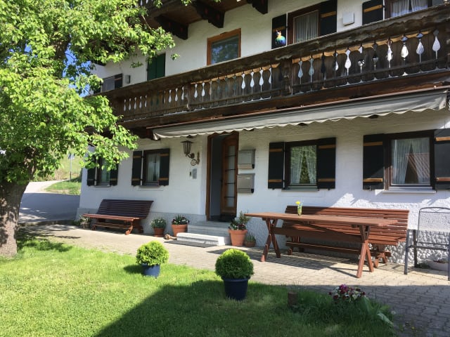 Unsere Ferienwohnung liegt im wunderschönen Anger, in Oberbayern und bietet Platz für 2 bis 3 (2 Erwachsene und 1 Kind bzw. Jugendliche/r) Personen.