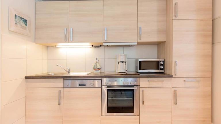 Die Ferienwohnung verfügt über 2 Schlafzimmer, einen TV mit Satellitenempfang, eine gut ausgestattete Küchenzeile mit Kühlschrank und Geschirrspüler sowie ein Badezimmer mit Dusche.