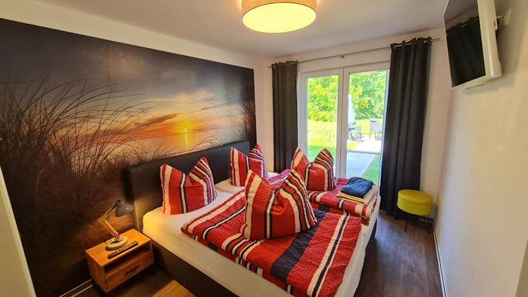 Die Ferienwohnung verfügt über ein Schlafzimmer, ein Wohnzimmer, einen Flachbild-TV und eine gut ausgestattete Küchenzeile mit Kühlschrank und Geschirrspüler. Ein Badezimmer mit Dusche ist ebenfalls vorhanden. Gegen Aufpreis können Handtücher und Bettwäsche bereitgestellt werden. Die Zimmer sind schallisoliert und es gibt die Möglichkeit, ein Babybett für Gäste bis 2 Jahre zu erhalten.
