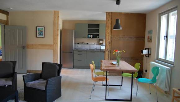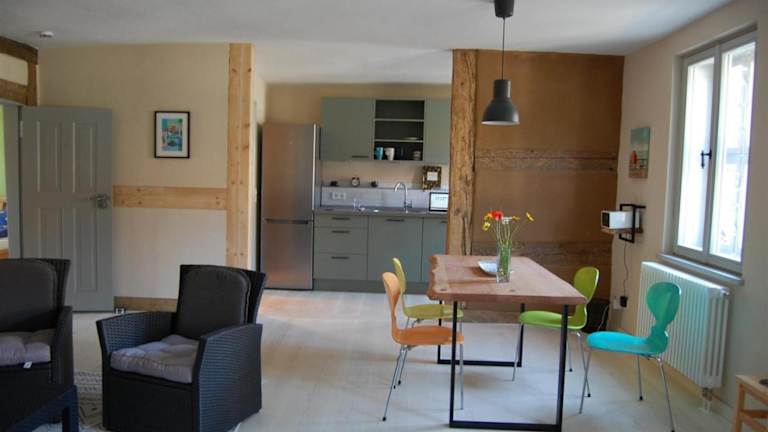 Die Ferienwohnung bietet eine gut ausgestattete Küche mit Kühlschrank und Geschirrspüler. Für Grillmöglichkeiten ist ebenfalls gesorgt. Handtücher und Bettwäsche werden bereitgestellt.