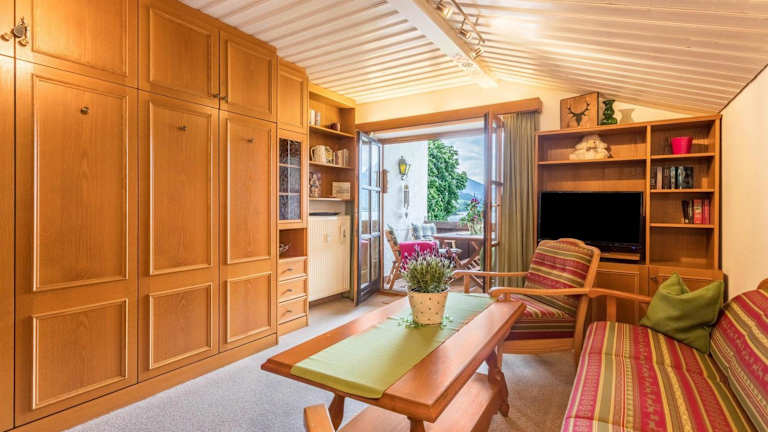 Die Ferienwohnung verfügt über ein Schlafzimmer, ein Wohnzimmer mit TV, eine gut ausgestattete Küche mit Kühlschrank und Geschirrspüler sowie ein Badezimmer mit Dusche. Handtücher und Bettwäsche werden bereitgestellt. Ein Balkon mit Bergblick ist ebenfalls vorhanden.