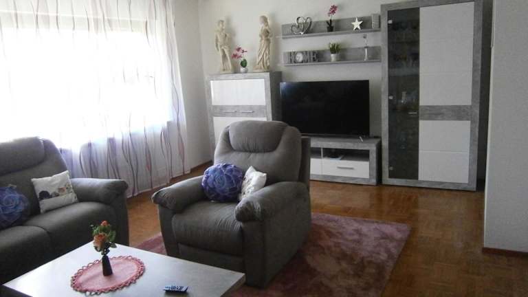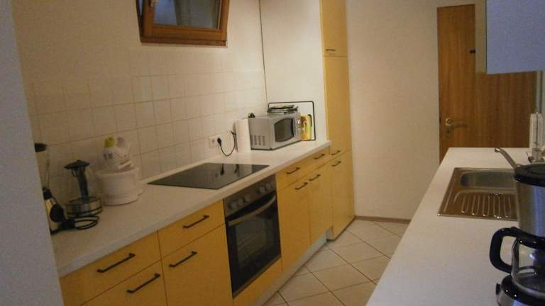 Die Ferienwohnung besteht aus zwei Schlafzimmern, einem Wohnzimmer sowie einer voll ausgestatteten Küche, die mit Kühlschrank und Kaffeemaschine ausgestattet ist. Ein Badezimmer mit Dusche und Haartrockner ist ebenfalls vorhanden. Handtücher und Bettwäsche werden bereitgestellt.
