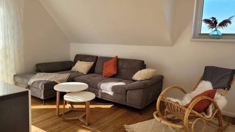 Die Ferienwohnung verfügt über zwei gemütliche Schlafzimmer, ein Wohnzimmer und eine voll ausgestattete Küche. Die Küche ist mit einem Kühlschrank und einer Kaffeemaschine ausgestattet. Im Badezimmer finden Sie eine Dusche und einen Haartrockner. Handtücher und Bettwäsche werden zur Verfügung gestellt. Eine Terrasse steht Ihnen ebenfalls zur Verfügung.