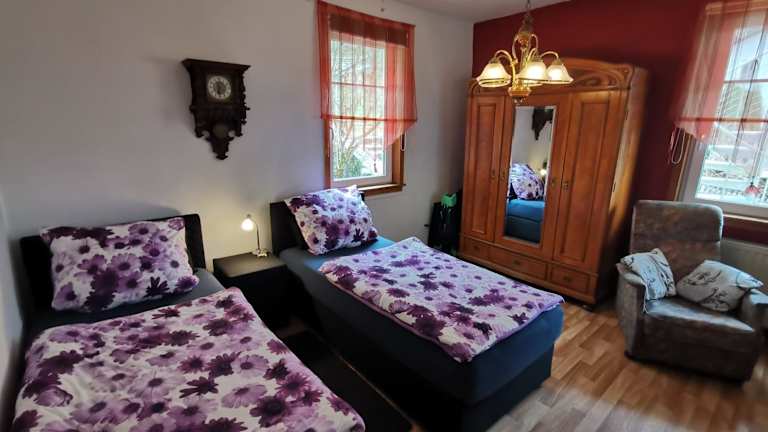 Die Ferienwohnung Sabine befindet sich am ruhigen Stadtrand von Schmalkalden, einer charmanten Stadt im Thüringer Wald. Die Unterkunft liegt nur 1,4 km vom historischen Stadtzentrum entfernt, wo Sie die reiche Geschichte und Kultur der Region erkunden können. Der Thüringer Wald beginnt direkt vor der Tür und lädt zu Spaziergängen, Wanderungen und Fahrradtouren ein. In der Umgebung gibt es auch viele Skigebiete, darunter Suhl (22 km entfernt) und Friedrichroda (16 km entfernt).