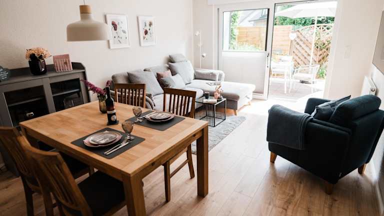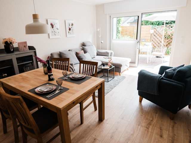 Die Ferienwohnung umfasst ein Schlafzimmer, ein Wohnzimmer mit Flachbild-TV sowie eine gut ausgestattete Küche mit Kühlschrank und Geschirrspüler. Zusätzlich ist ein Badezimmer mit Dusche vorhanden. Handtücher und Bettwäsche werden bereitgestellt.