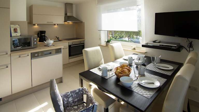 In der Ferienwohnung Sandfloh haben Sie die Möglichkeit, Ihre eigenen Mahlzeiten zuzubereiten, da die Unterkunft über eine Küchenzeile mit einem Backofen und einem Toaster verfügt. Es gibt auch Restaurants in der Umgebung, in denen Sie lokale Spezialitäten genießen können. Probieren Sie unbedingt die norddeutschen Fischgerichte, die frisch aus der Nordsee stammen.