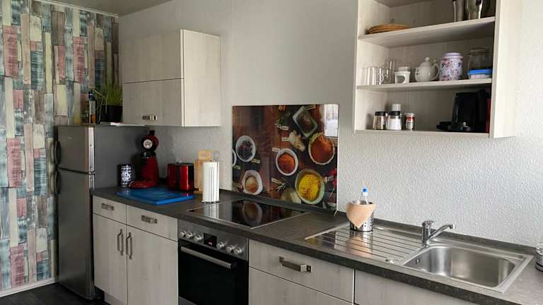 Die Ferienwohnung besteht aus einem Schlafzimmer und einem Wohnzimmer. Zur Ausstattung der voll ausgestatteten Küche gehören ein Kühlschrank und eine Kaffeemaschine. Des Weiteren ist ein Badezimmer mit einer Badewanne vorhanden. Handtücher und Bettwäsche werden bereitgestellt. Die Unterkunft ist eine Nichtraucherunterkunft und das Rauchen ist in ausgewiesenen Bereichen gestattet.