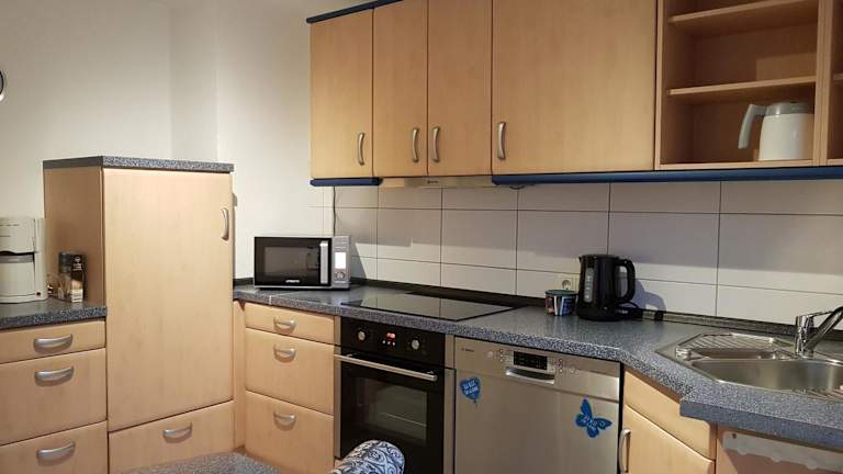 Die Ferienwohnung umfasst zwei Schlafzimmer, ein Flachbild-TV mit Satellitenkanälen, eine gut ausgestattete Küche mit Kühlschrank und Geschirrspüler sowie ein Badezimmer mit Dusche. Zu den Ausstattungselementen gehören außerdem Heizung, Rauchmelder und Einrichtungen für behinderte Gäste.