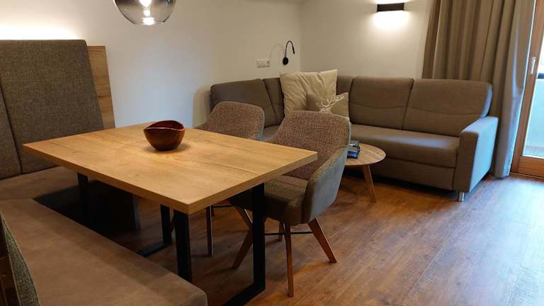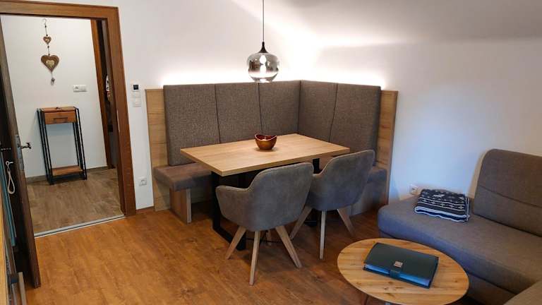 Die Ferienwohnung Schachner bietet ein komfortables und gemütliches Apartment mit 2 Schlafzimmern. Vom Balkon aus haben Sie einen herrlichen Blick auf die umliegende Berglandschaft. Im Inneren erwartet Sie ein geräumiger Sitzbereich mit einem Flachbild-Sat-TV, ideal zum Entspannen nach einem aktiven Tag. Die gut ausgestattete Küchenzeile verfügt über einen Geschirrspüler, so dass Sie Ihre Mahlzeiten bequem zubereiten können. Das Badezimmer ist mit einer Infrarotkabine und einem Haartrockner ausgestattet. WLAN nutzen Sie kostenfrei.