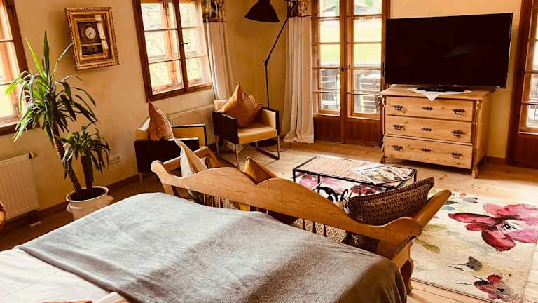Die Ferienwohnung Schankwirtschaft Wohlfart befindet sich in der Nähe von Füssen, etwa 14 km entfernt von Sehenswürdigkeiten wie dem Museum der Stadt Füssen und Kloster St. Mang. Der Flughafen Memmingen liegt in einer Entfernung von 62 km.