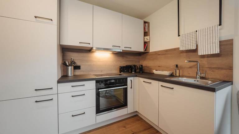 Die Ferienwohnung verfügt über ein Schlafzimmer, ein Wohnzimmer, einen Flachbild-TV sowie eine gut ausgestattete Küche mit Kühlschrank und Geschirrspüler. Es gibt außerdem ein Badezimmer mit Dusche. Handtücher und Bettwäsche werden bereitgestellt.