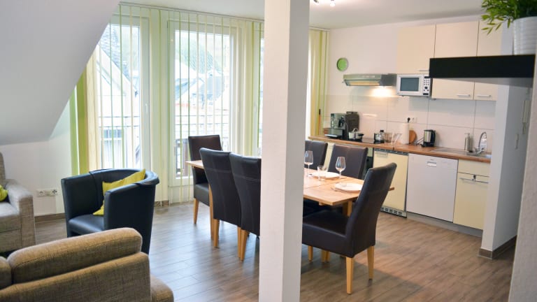 2er Apartments: Die 2-Personen-Apartments sind 20-30 m² groß und bieten Ihnen alles was Sie für einen entspannten Urlaub benötigen. Teilweise können Sie einen unvergesslichen Blick auf die Weinberge genießen. Alle Apartments sind mit Küche und Bad ausgestattet. Wenn Sie mit Freunden reisen oder ihren jugendlichen Kindern ein bisschen mehr Freiraum gewähren möchten, besteht die Möglichkeit über eine Verbindungstür aus einem 2-Personen- ein 4-Personenapartment zu gestalten. So erhalten Sie genau den Gestaltungsfreiraum, den Sie wünschen. Die 4er Apartments Die 4-Personen-Apartments sind 40-60 m² groß. Schlaf- und Wohnraum sind in diesen Apartments nicht kombiniert. Sie finden neben dem Wohnraum zwei eigenständige Schlafräume vor, die mit einem Doppelbett bzw. zwei Einzelbetten ausgestattet sind. Alle Apartments sind mit Küche und Bad ausgestattet. Im gemütlichen Wohnzimmer mit eigener Wohnlandschaft verweilen Sie bei einem Glas Wein und verbringen gesellige Abende. Das 6er Apartment Das 6-Personen-Apartment hat eine Größe von 80 m² und besticht durch seinen großzügigen Wohn- und Essraum mit gemütlicher Sitzgelegenheit. Sie schlafen in getrennten Schlafzimmern. Zwei davon sind mit Doppelbetten ausgestattet, das Dritte mit zwei Einzelbetten. Alle Apartments sind mit Küche und Bad ausgestattet. Das besondere Highlight ist der einzigartige Blick vom Balkon. Sie können den Sonnenuntergang über den Weinbergen Ahrweilers genießen und sich rundum wohlfühlen.