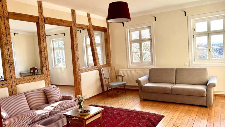 Die Ferienwohnung Schloss Heldritt befindet sich in Bad Rodach, etwa 35 km von der Veste Coburg entfernt und 37 km von der Skiarena Silbersattel. Die Umgebung bietet vielfältige Möglichkeiten für Wanderungen. Zudem liegt die Unterkunft 44 km vom Bahnhof Suhl und 108 km vom Flughafen Erfurt-Weimar entfernt.