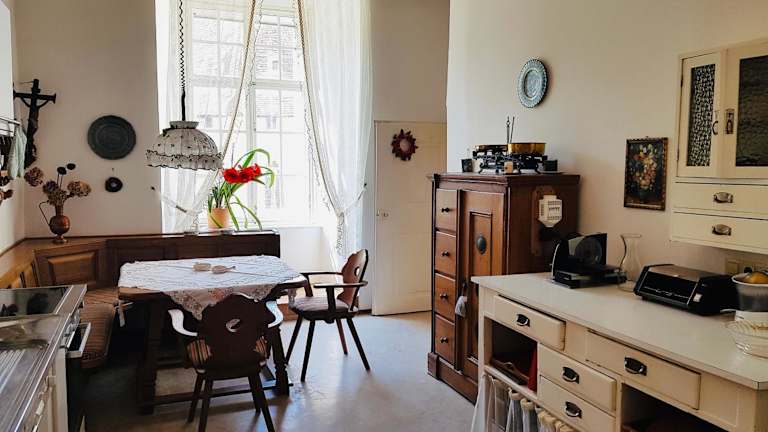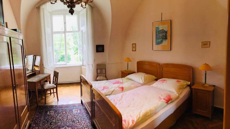 Die Ferienwohnung Schloss Schrattenthal befindet sich in Schrattenthal, in der Nähe von verschiedenen Freizeitmöglichkeiten wie Wandern. Wichtige Sehenswürdigkeiten in der Umgebung sind Schloss Frain (33 km entfernt), Krahuletz-Museum (13 km) und Amethystwelt Maissau (22 km). Der nächstgelegene Flughafen ist der Flughafen Brno, der 86 km von der Unterkunft entfernt ist.