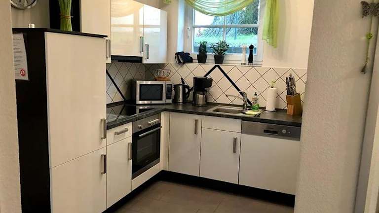 Das Apartment ist mit einem Flachbild-Sat-TV ausgestattet und verfügt über eine moderne Küche mit Kühlschrank, Geschirrspüler, Backofen und Haartrockner. Die Wohnung bietet Ihnen somit alles, was Sie für einen angenehmen Aufenthalt benötigen.