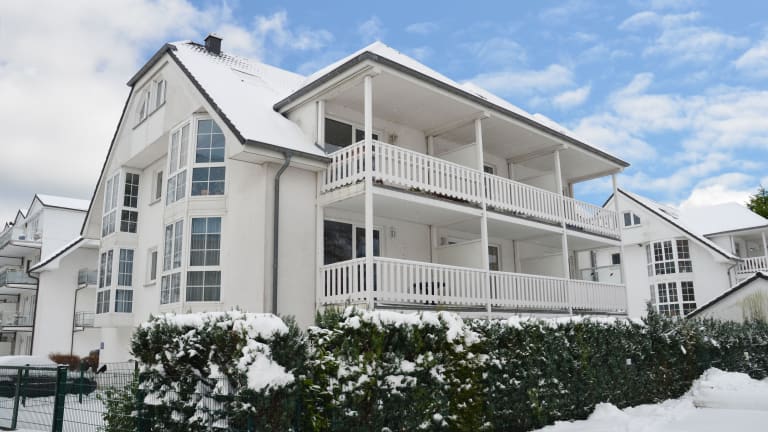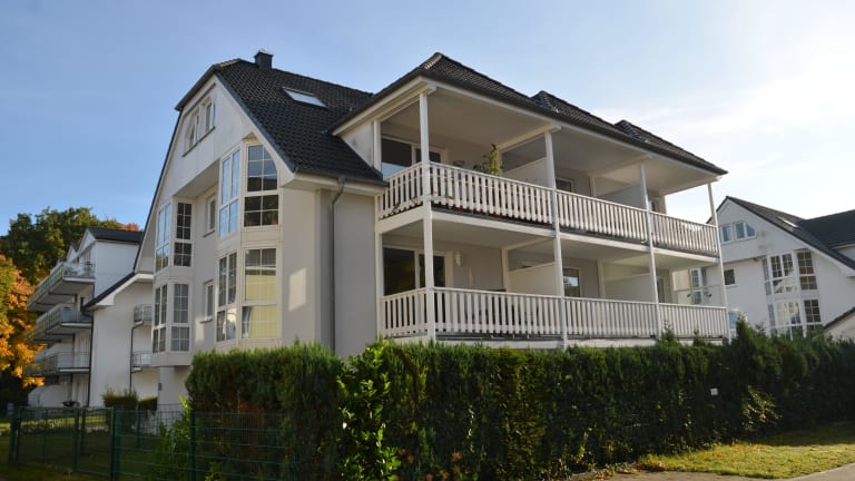 Ein neugebautes Appartementhaus mit mehreren Wohnungen. Ein Abstellraum für Fahrräder und 1 PKW-Stellplatz ist vorhanden.
