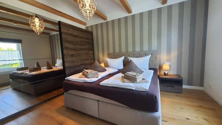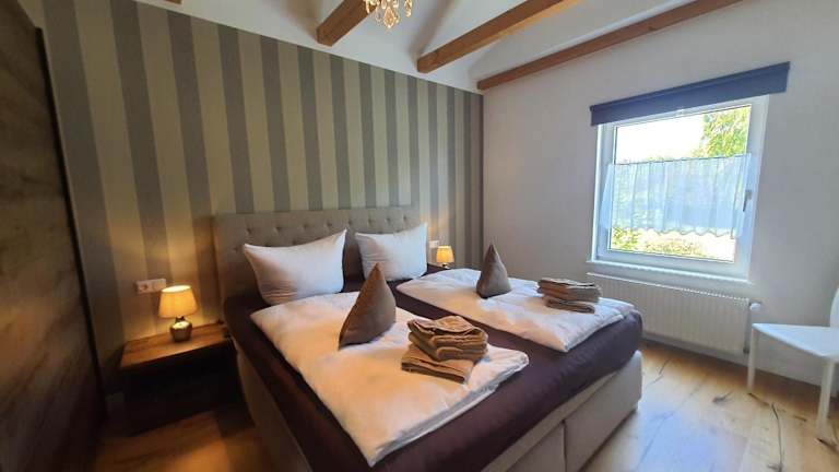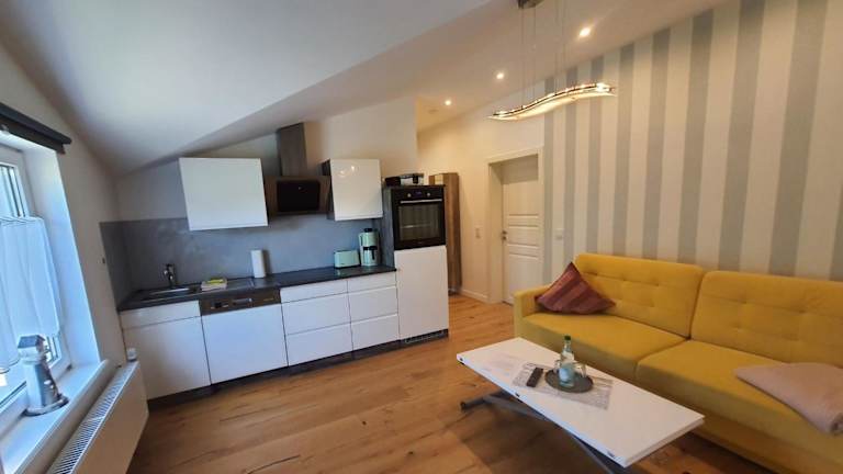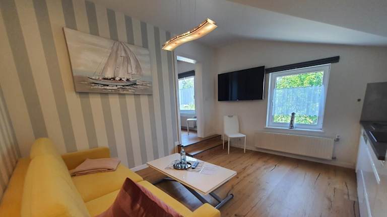 Die Ferienwohnung umfasst 1 Schlafzimmer, ein Wohnzimmer und eine voll ausgestattete Küche, ausgestattet mit einem Kühlschrank und einem Geschirrspüler. Handtücher und Bettwäsche werden zur Verfügung gestellt. Die Zimmer sind Nichtraucherzimmer.