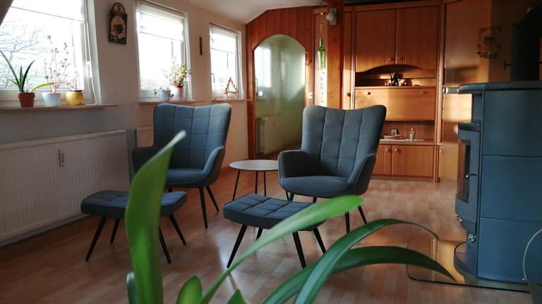 Die Ferienwohnungen am Schwanenteich befinden sich in einer ruhigen Lage im Erholungsgebiet von Mühlhausen. In der Nähe finden Sie eine parkähnliche Umgebung und einen Teich mit Schwänen, die eine idyllische Atmosphäre schaffen. Das Stadtzentrum von Mühlhausen ist nur einen 25-minütigen Spaziergang entfernt und bietet eine Fülle von historischen Gebäuden und Kirchen, die Sie erkunden können. Die nächste Bushaltestelle erreichen Sie bequem in nur 5 Gehminuten.