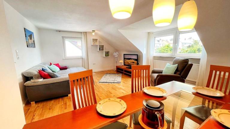 Die Ferienwohnung befindet sich in Schweinfurt, 47 km von Hauptbahnhof Würzburg und dem Congress Centrum Würzburg entfernt. In der näheren Umgebung befinden sich Sehenswürdigkeiten wie die Alte Mainbrücke und das Museum am Dom, beide nur 48 km entfernt.
