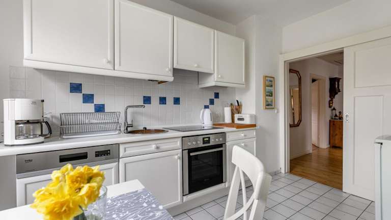 Die Ferienwohnung verfügt über ein Schlafzimmer, einen TV mit Kabelkanälen, eine gut ausgestattete Küche mit Kühlschrank und Geschirrspüler sowie ein Badezimmer mit Dusche. Handtücher und Bettwäsche werden bereitgestellt.