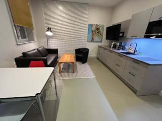 In der Unterkunft besteht die Möglichkeit, Essen in die Wohnung liefern zu lassen. Darüber hinaus sind in der voll ausgestatteten Küche Kühlschrank und Geschirrspüler vorhanden, sodass Selbstversorgung möglich ist.