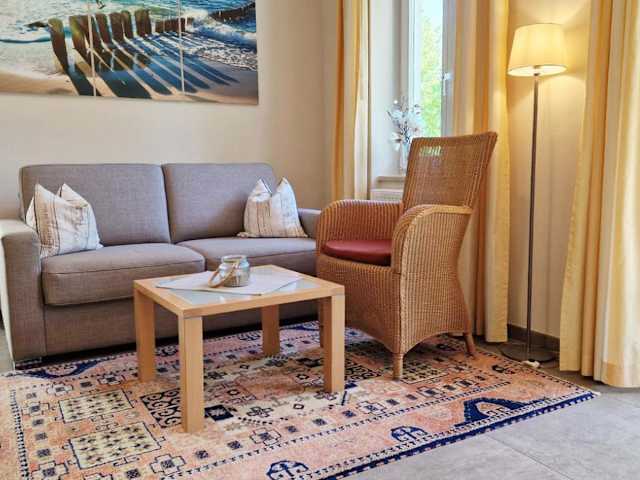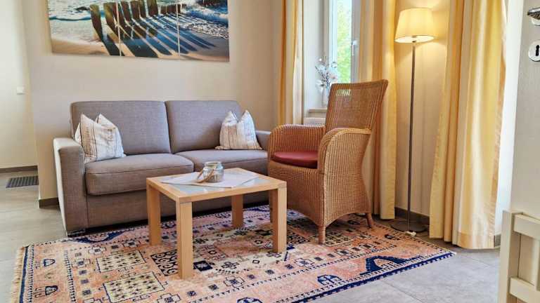 Die Ferienwohnung Seeadler Nr. 8 befindet sich im Erdgeschoss und verfügt über ein gemütliches Schlafzimmer mit allen notwendigen Annehmlichkeiten für einen angenehmen Aufenthalt. Im Wohnbereich finden Sie einen Flachbild-Kabel-TV, der Ihnen Unterhaltung bietet. Die voll ausgestattete Küche ist mit einem Kühlschrank, einem Backofen, einer Waschmaschine, einem Geschirrspüler und einer Mikrowelle ausgestattet, so dass Sie Ihre Mahlzeiten bequem zubereiten können.