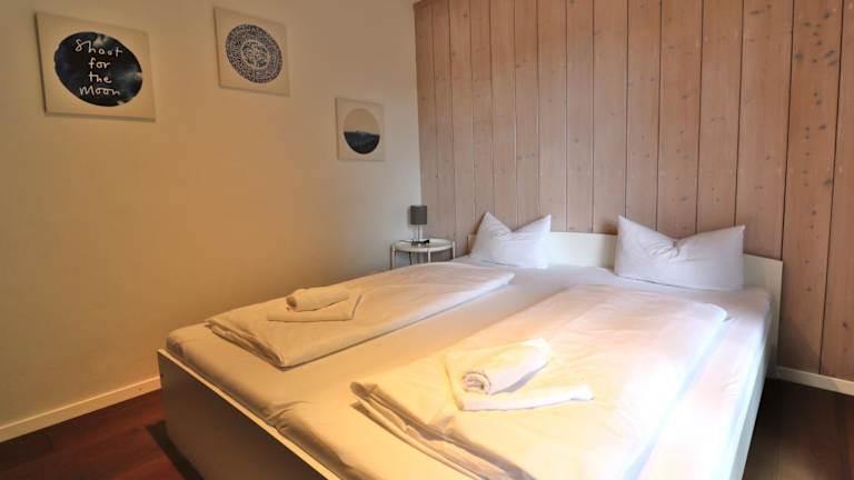Die Ferienwohnung besteht aus 4 separaten Schlafzimmern, einer voll ausgestatteten Küche mit Kühlschrank und Geschirrspüler sowie einem Badezimmer. Ein TV ist ebenfalls vorhanden.