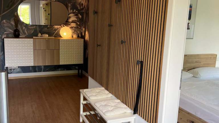 Die Ferienwohnung verfügt über ein Schlafzimmer, ein Wohnzimmer, ein gut ausgestattete Küche und ein Badezimmer mit Dusche und Badewanne. Zur Ausstattung gehören ein Satelliten-Flachbild-TV sowie Handtücher und Bettwäsche. Zudem gibt es eine Terrasse mit Gartenblick. Haustiere sind auf Anfrage erlaubt.