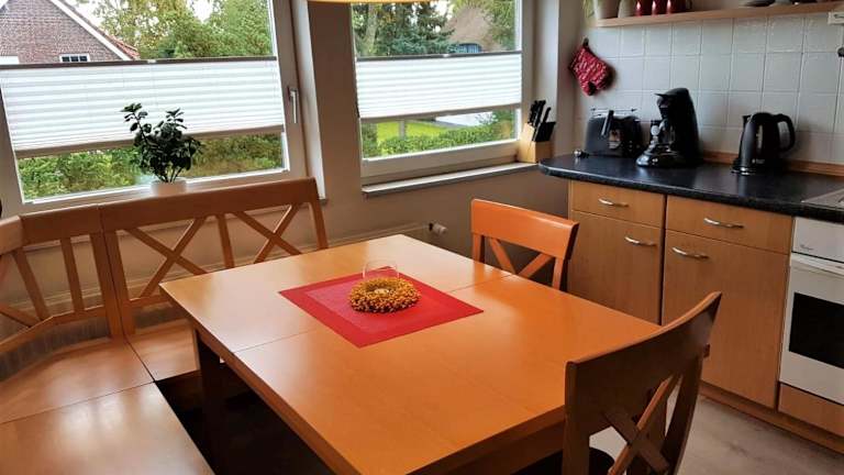 Entdecken Sie die Ferienwohnung Sommerwind in Rhauderfehn und genießen Sie einen erholsamen Aufenthalt in einer komfortablen Unterkunft. Mit kostenfreien Fahrrädern, einem Garten und einer Terrasse bietet diese Ferienwohnung alles, was Sie für einen entspannten Urlaub benötigen. Die Unterkunft verfügt über kostenfreies WLAN und bietet einen herrlichen Blick auf den Garten. Sie haben Zugang zu einem Balkon und kostenfreien Privatparkplätzen. Das Apartment ist gut ausgestattet und verfügt über eine Küche, ein Wohnzimmer, zwei Schlafzimmer und ein Badezimmer. Handtücher und Bettwäsche werden gestellt. Genießen Sie die Möglichkeit, in der Nähe des Apartments Fahrrad zu fahren und nutzen Sie den Grill, der Ihnen zur Verfügung steht. Der Flughafen Groningen ist etwa 91 km entfernt.