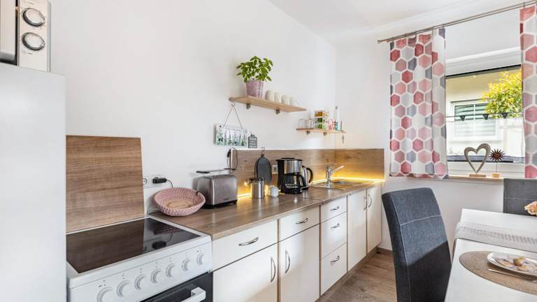 Die Ferienwohnung umfasst 1 Schlafzimmer und 1 Badezimmer. Zur Ausstattung gehören Bettwäsche, Handtücher, ein TV und eine voll ausgestattete Küche. Des Weiteren steht eine Terrasse mit Gartenblick zur Verfügung.