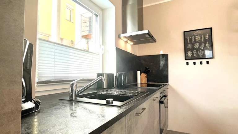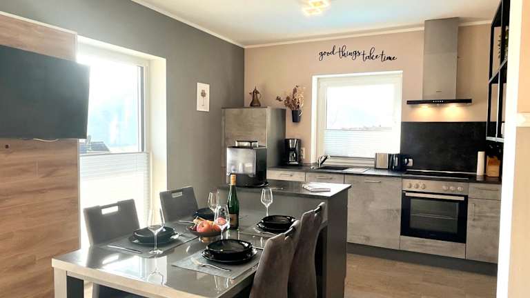 Die Unterkunft ist mit einer Küche ausgestattet, die einen Kühlschrank und einen Geschirrspüler beinhaltet.