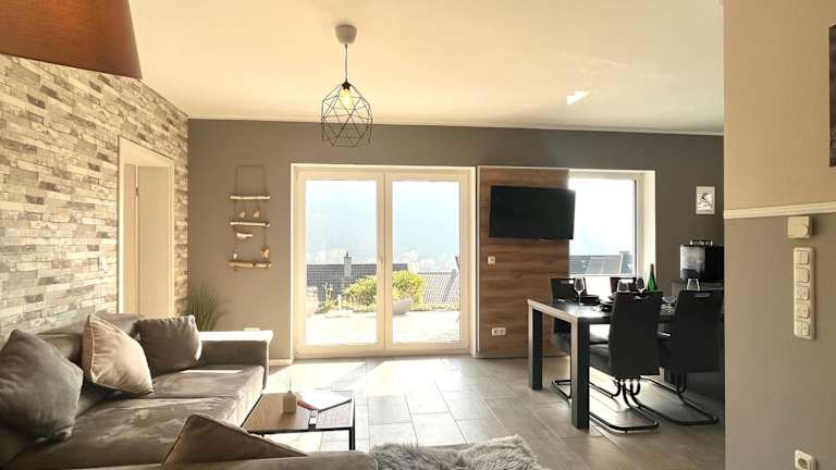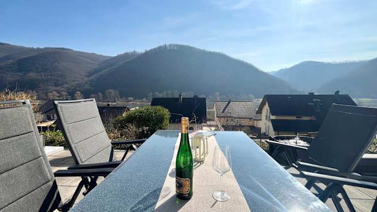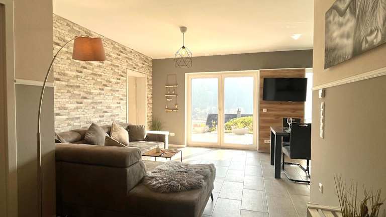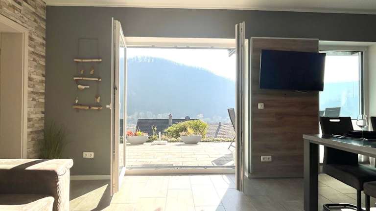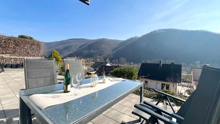 Die Ferienwohnung Sonnenterrasse bietet Platz für 1-4 Personen und verfügt über zwei Schlafzimmer sowie eine große Terrasse. Kostenloses WLAN und ein Garten sind ebenfalls vorhanden.