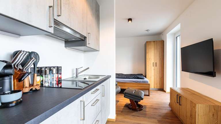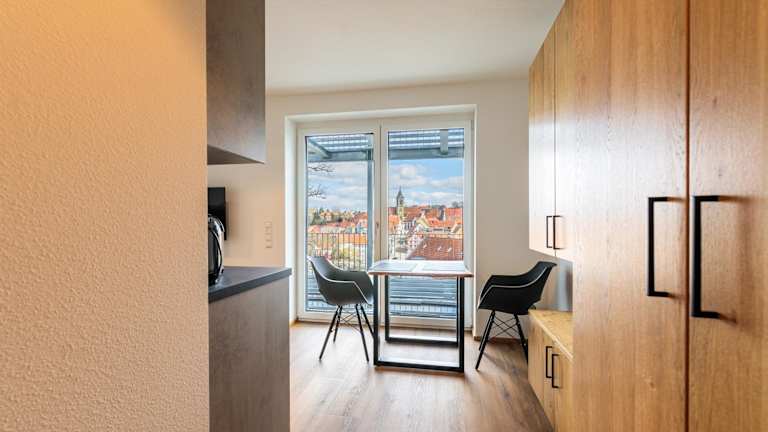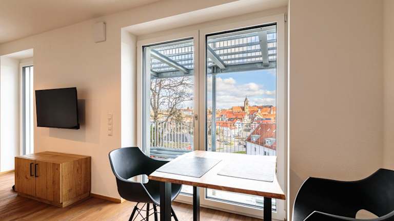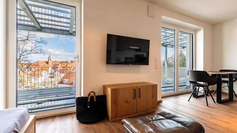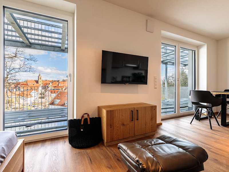 Die Ferienwohnung umfasst ein Schlafzimmer und ein Badezimmer. Sie ist ausgestattet mit Bettwäsche, Handtüchern, einem Flachbild-TV und einer voll ausgestatteten Küchenzeile. Zudem verfügt der Balkon über einen Blick auf die Stadt.