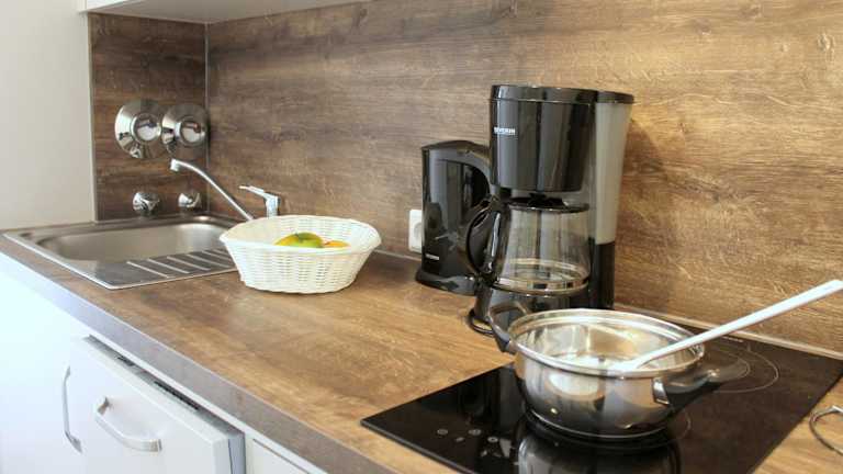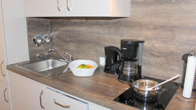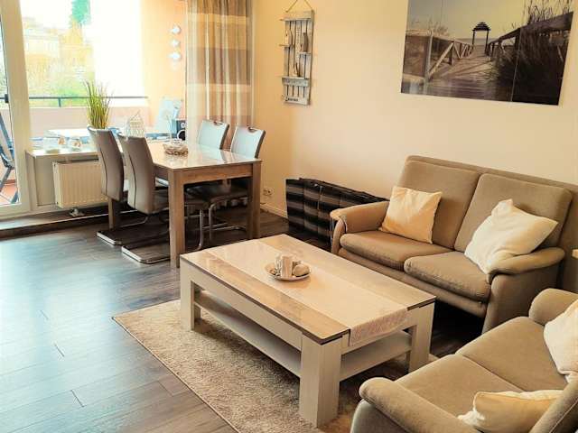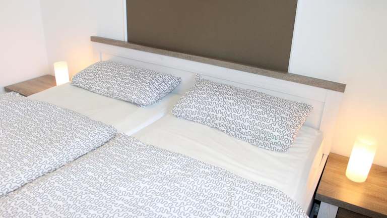 Die Ferienwohnung verfügt über 2 Schlafzimmer sowie eine Küchenzeile, die mit einem Kühlschrank, einem Geschirrspüler und einem Wasserkocher ausgestattet ist. Die Unterkunft bietet Platz und Komfort für einen angenehmen Aufenthalt.