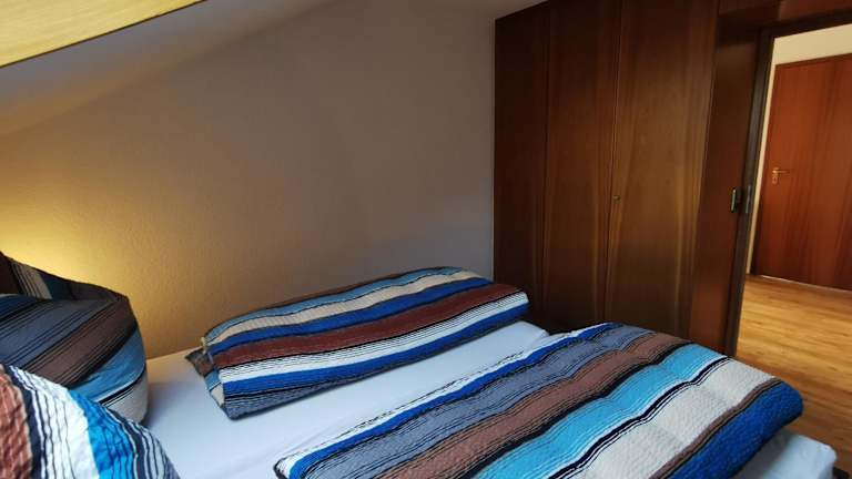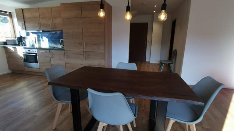 Die Ferienwohnung verfügt über ein Schlafzimmer, ein Wohnzimmer mit einem Flachbild-TV, eine gut ausgestattete Küche mit Kühlschrank und Geschirrspüler sowie ein Badezimmer mit Dusche. Eine Sonnenterrasse lädt zum Entspannen ein. Handtücher und Bettwäsche werden bereitgestellt, und alle öffentlichen sowie privaten Bereiche sind Nichtraucherzonen.