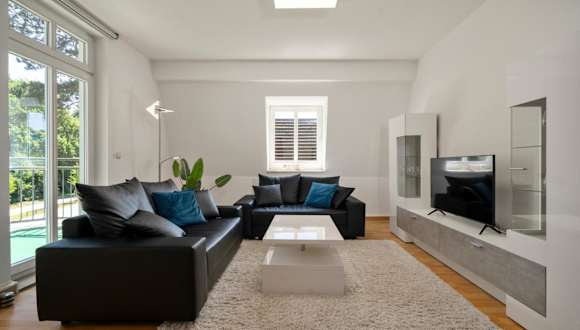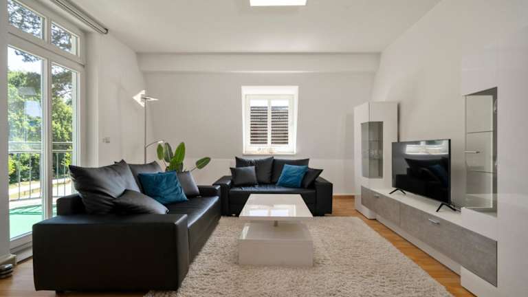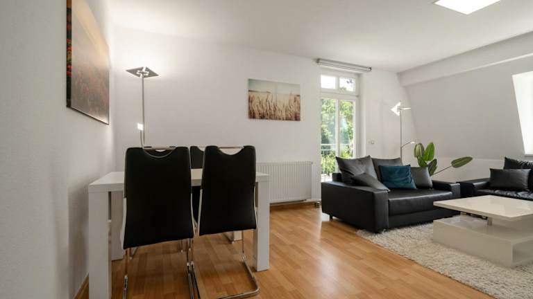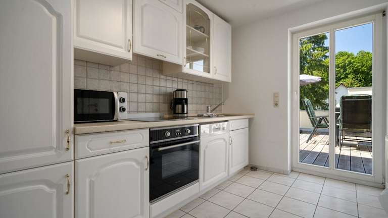 Die Ferienwohnung bietet eine komfortable Ausstattung mit einer Küche, die mit einem Kühlschrank und einem Geschirrspüler ausgestattet ist. Zudem stehen ein TV, Handtücher und Bettwäsche zur Verfügung.