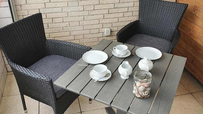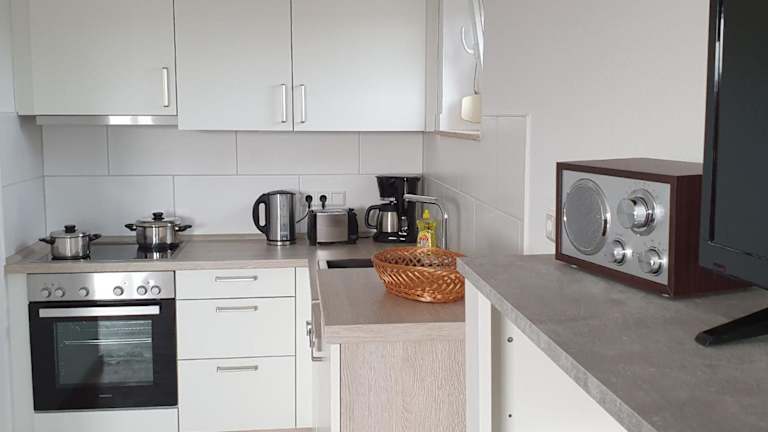 Die Ferienwohnung umfasst ein Schlafzimmer, ein Wohnzimmer, einen Flachbild-TV und eine gut ausgestattete Küche mit Kühlschrank und Geschirrspüler. Zudem steht ein Badezimmer mit Dusche zur Verfügung. Ein Balkon mit Meerblick ist ebenfalls vorhanden. Handtücher und Bettwäsche können gegen Aufpreis bereitgestellt werden.