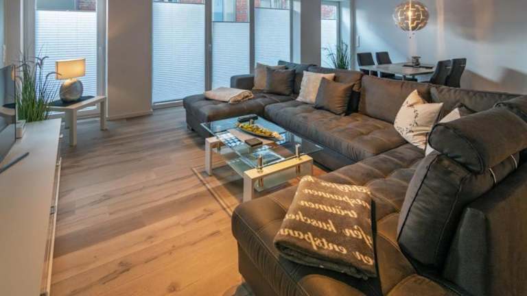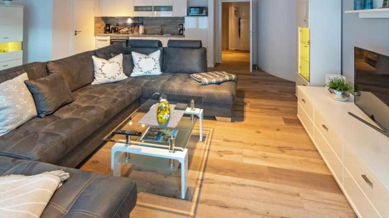 Die Ferienwohnung verfügt über zwei Schlafzimmer, eine Küchenzeile mit Kühlschrank und Geschirrspüler sowie ein Badezimmer mit Dusche, Haartrockner und Waschmaschine. Zur Ausstattung gehören zudem ein TV und ein CD-Player.