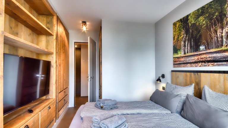 Die Ferienwohnung umfasst zwei Schlafzimmer und bietet Annehmlichkeiten wie kostenloses WLAN, einen TV sowie Handtücher und Bettwäsche. Balkon und Gartenmöbel stehen den Gästen zur Verfügung.