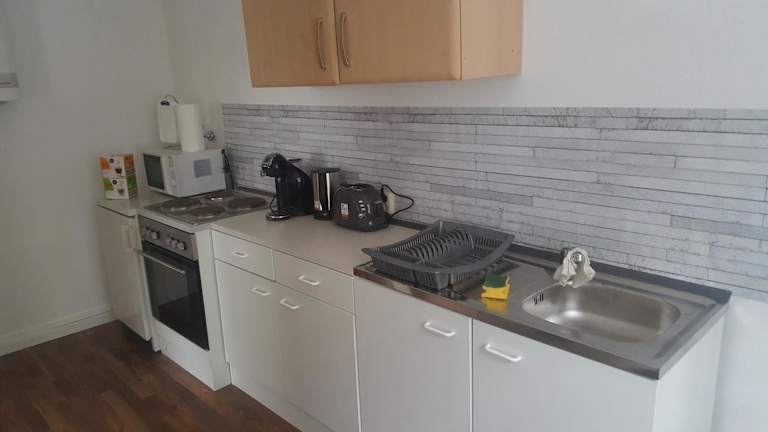 Die Ferienwohnung beinhaltet ein Schlafzimmer, ein Wohnzimmer und eine voll ausgestattete Küche mit Kühlschrank und Kaffeemaschine. Das Badezimmer ist mit einer Badewanne und kostenlosen Pflegeprodukten ausgestattet. Handtücher und Bettwäsche werden in der Unterkunft zur Verfügung gestellt.