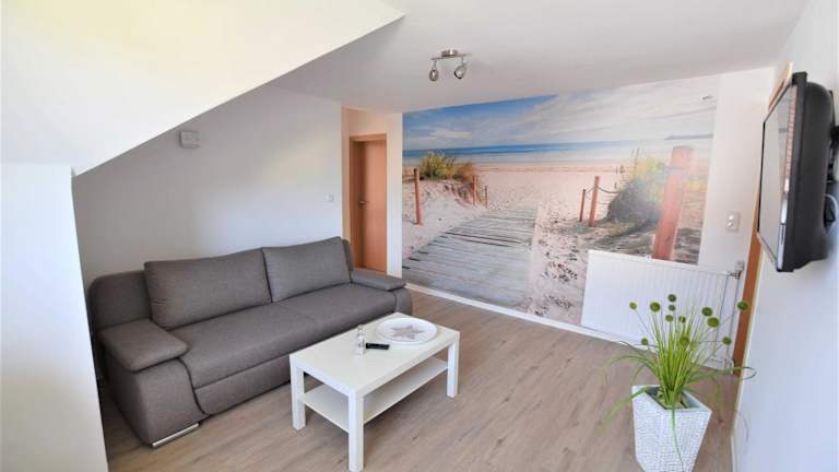 Die Ferienwohnung verfügt über ein Schlafzimmer sowie ein Wohnzimmer, das mit einem Flachbild-TV mit Satellitenkanälen ausgestattet ist. Zur Ausstattung der Unterkunft gehören eine voll ausgestattete Küche mit Kühlschrank und Geschirrspüler, sowie ein Badezimmer mit Dusche. Handtücher und Bettwäsche sind vorhanden.