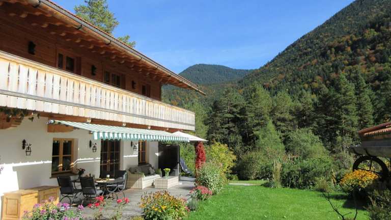 Die Unterkunft befindet sich in Kreuth, in der Region Bayern, und bietet eine ruhige Lage mit Blick auf die umliegenden Berge.